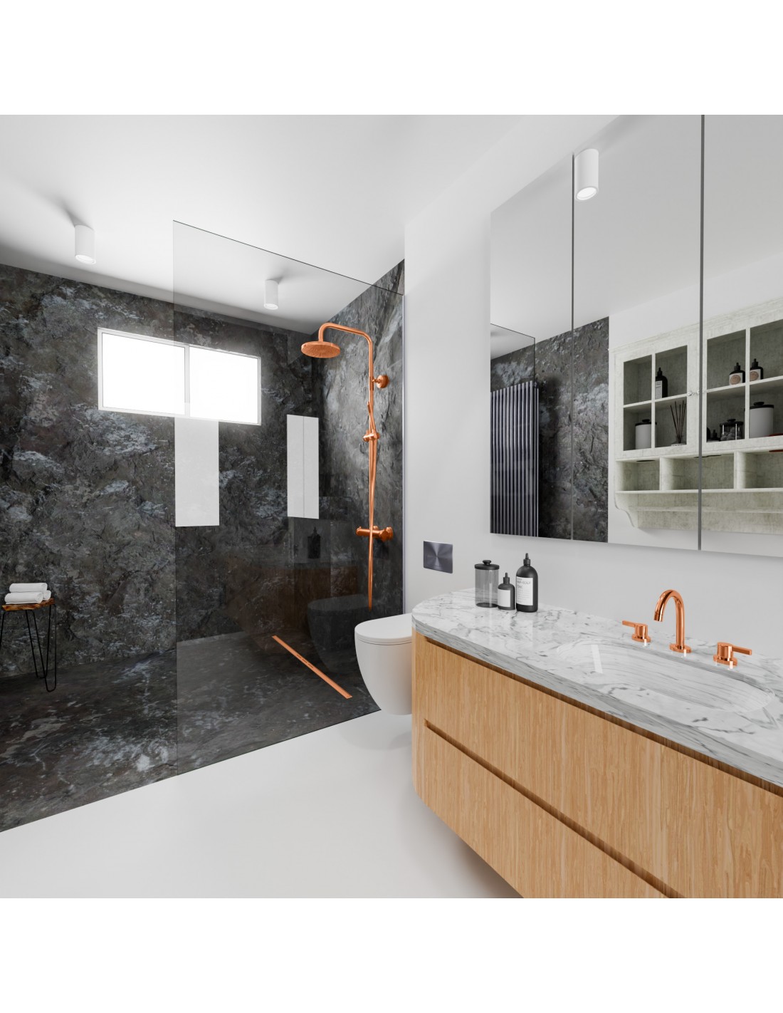De douchegoten zijn gemaakt van een hoogwaardige kwaliteit roestvrij staal 316 en worden gekleurd met het zogenaamde “Physical Vapor Deposition” (PVD) procédé.