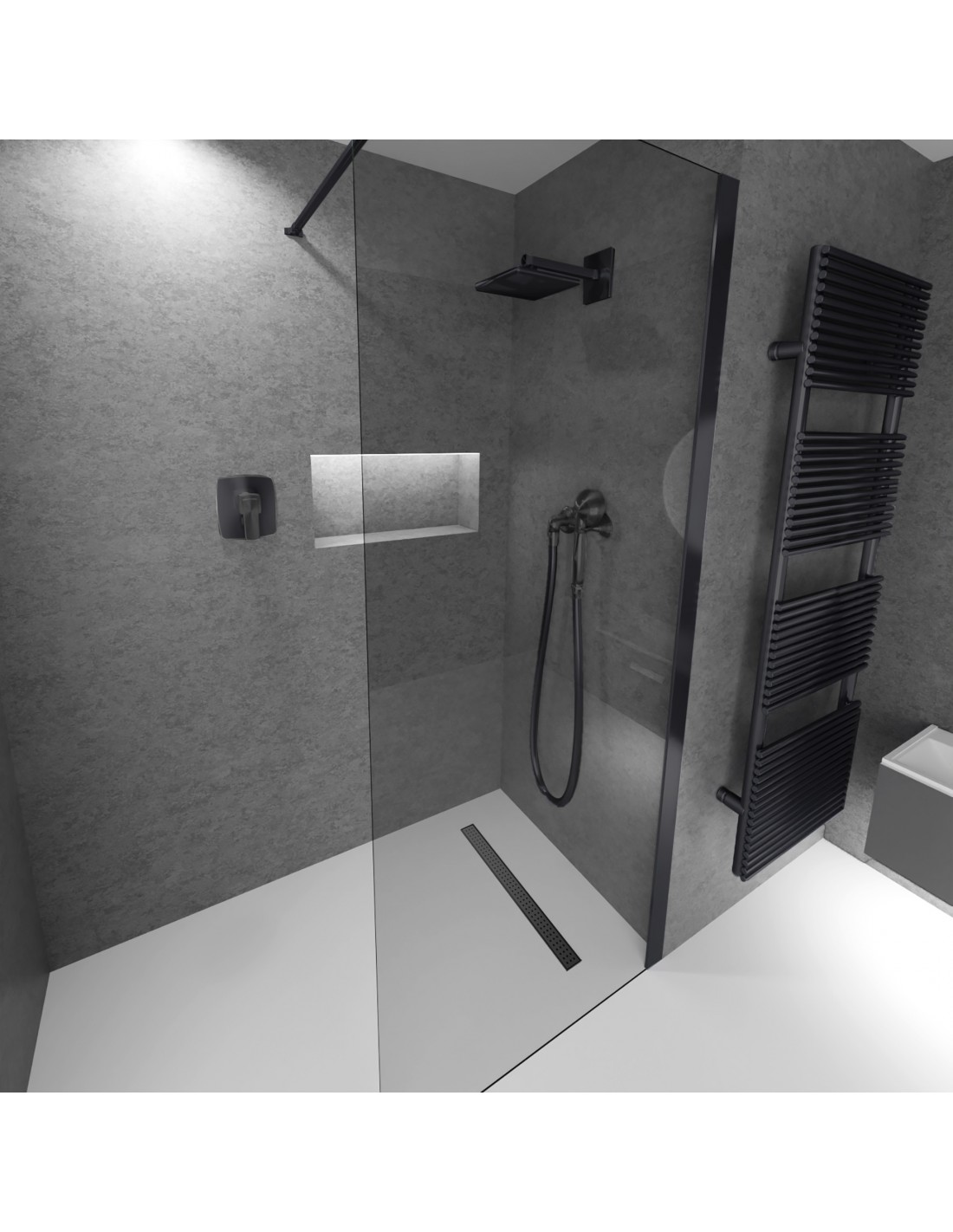 Onze doucheplaten zijn ontworpen om met tegels af te werken. Toch zijn ze ook geschikt voor andere materiaalsoorten zoals steen, mozaïek, marmer of gepolijst beton.