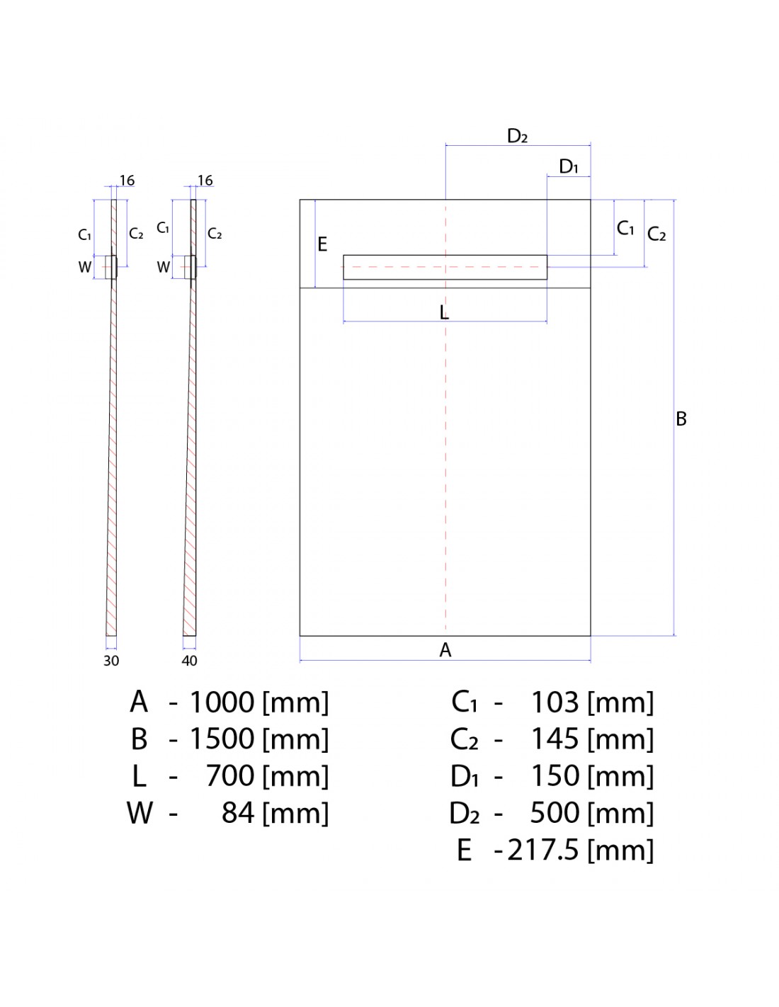 Inbegrepen onderdelen Technische specificatieOnze “OneWay Fall Showerlay Wiper 1000 x 1500 mm Line Pure” is een inloopdoucheplaat met een geïntegreerde douchegoot. Deze doucheplaat wordt gekenmerkt door een enkele helling in één richting, gevormd naar de afvoergoot. Afhankelijk van het type vloer en de grootte van de helling die nodig is, zijn er twee diktes beschikbaar: 30 mm en 40 mm. De “OneWay Showerlay” zorgt voor een uitstekende hechting op de ondergrond plús zorgt voor en 100% hydro-isolatie. De OneWay douchebak speelt in op de wensen van onze klanten. De vierkante-meter-inloopdoucheplaat wordt geleverd met een van de meest populaire douchegoten van 700 mm., welke geïntegreerd is in de doucheplaat alsook verzegeld tegen water. Natuurlijk worden de andere benodigde onderdelen ook meegeleverd, zoals passend rooster en afvoersifon met waterslothoogte van 20 mm en afvoercapaciteit van 26 l / min. Een vlakke inloopdouchebak voor badkamers met 1000 x 1500 mm is een typische maatvormer. Het heeft een lage inbouwdiepte en is gebouwd om een heerlijk grote doucheruimte te bieden. Deze vierkante doucheplaat is ongelooflijk veelzijdig en maakt een mooie match met een verscheidenheid aan doucheschermen en deuren. Het verzekert voldoende hardheid van de oppervlaktelaag waardoor zelfs zeer kleine mozaïeken kunnen worden gelijmd.