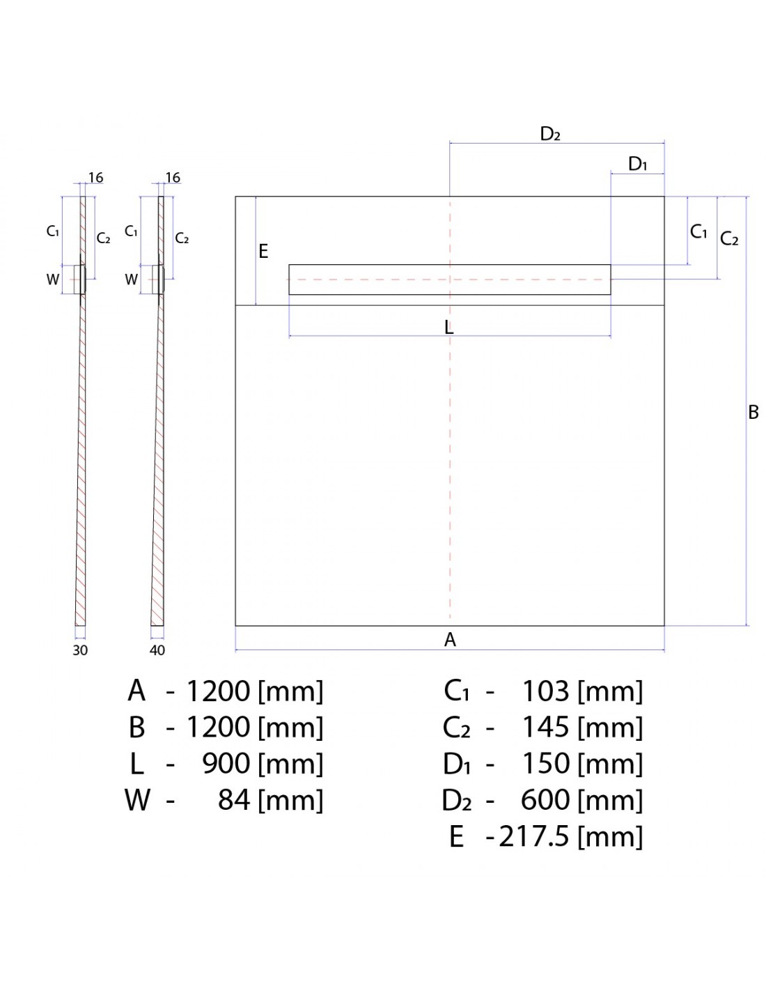 Inbegrepen onderdelen Technische specificatieOnze “OneWay Fall Showerlay Wiper 1200 x 1200 mm Line Zonda” is een inloopdoucheplaat met een geïntegreerde douchegoot. Deze doucheplaat wordt gekenmerkt door een enkele helling in één richting, gevormd naar de afvoergoot. Afhankelijk van het type vloer en de grootte van de helling die nodig is, zijn er twee diktes beschikbaar: 30 mm en 40 mm. De “OneWay Showerlay” zorgt voor een uitstekende hechting op de ondergrond plús zorgt voor en 100% hydro-isolatie. De OneWay douchebak speelt in op de wensen van onze klanten. De vierkante-meter-inloopdoucheplaat wordt geleverd met een van de meest populaire douchegoten van 900 mm., welke geïntegreerd is in de doucheplaat alsook verzegeld tegen water. Natuurlijk worden de andere benodigde onderdelen ook meegeleverd, zoals passend rooster en afvoersifon met waterslothoogte van 20 mm en afvoercapaciteit van 26 l / min. Een vlakke inloopdouchebak voor badkamers met 1200 x 1200 mm is een typische maatvormer. Het heeft een lage inbouwdiepte en is gebouwd om een heerlijk grote doucheruimte te bieden. Deze vierkante doucheplaat is ongelooflijk veelzijdig en maakt een mooie match met een verscheidenheid aan doucheschermen en deuren. Het verzekert voldoende hardheid van de oppervlaktelaag waardoor zelfs zeer kleine mozaïeken kunnen worden gelijmd.