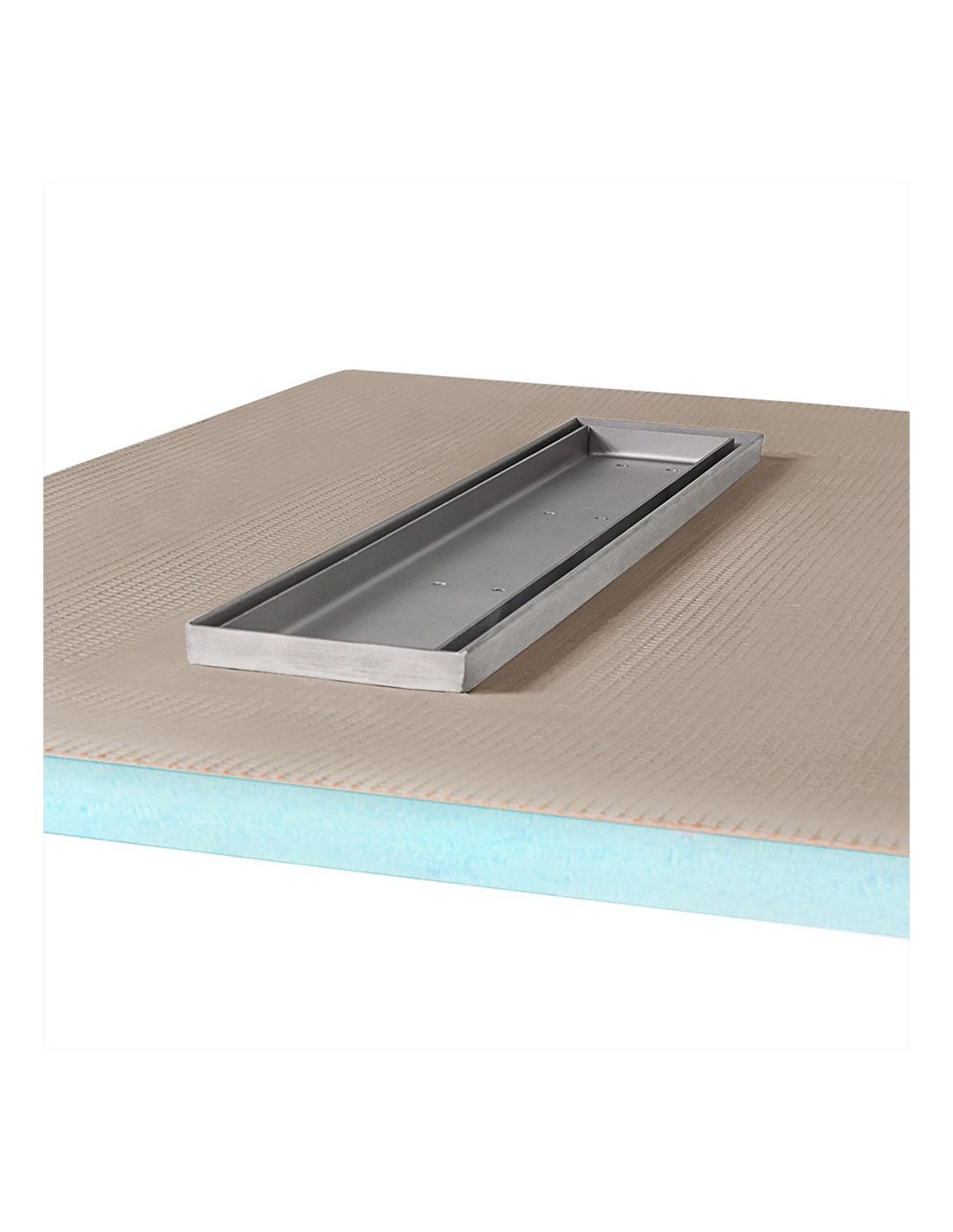 Doucheplaat met enkelzijdig afschot, perfect voor grootformaat tegels, wordt geleverd met een geïntegreerde roestvrijstalen goot. De plaat is tijdens het productieproces waterdicht gemaakt. Geen diagonale tegelsneden nodig.
