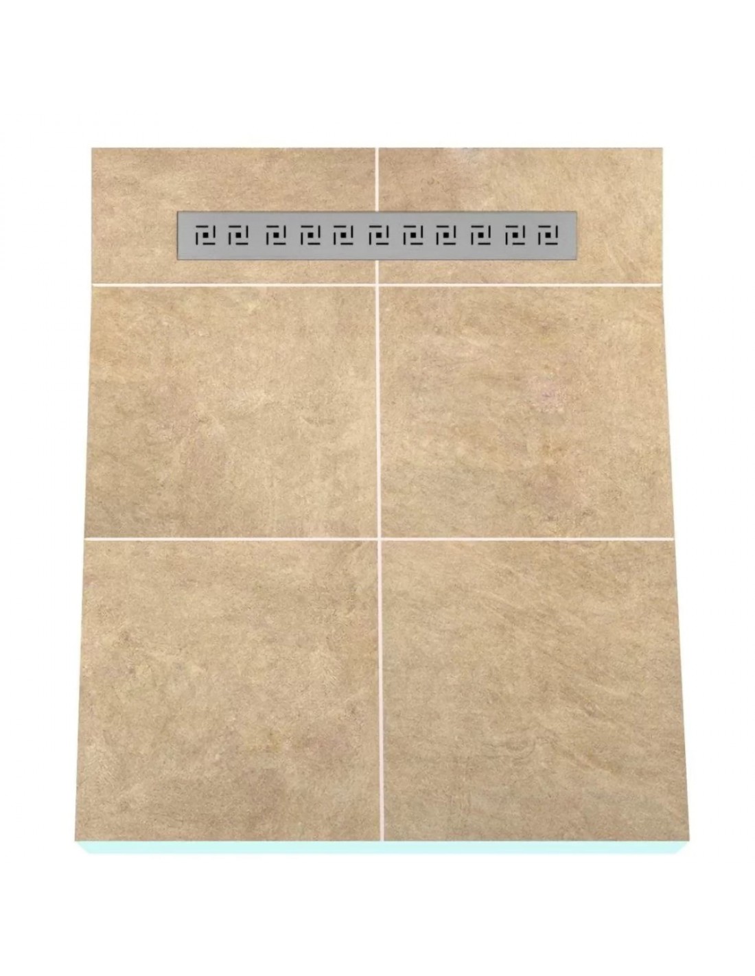 Doucheplaat met enkelzijdig afschot, perfect voor grootformaat tegels, wordt geleverd met een geïntegreerde roestvrijstalen goot. De plaat is tijdens het productieproces waterdicht gemaakt. Geen diagonale tegelsneden nodig.
