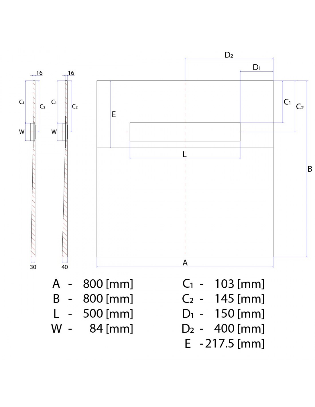 - 800 x 800 mm