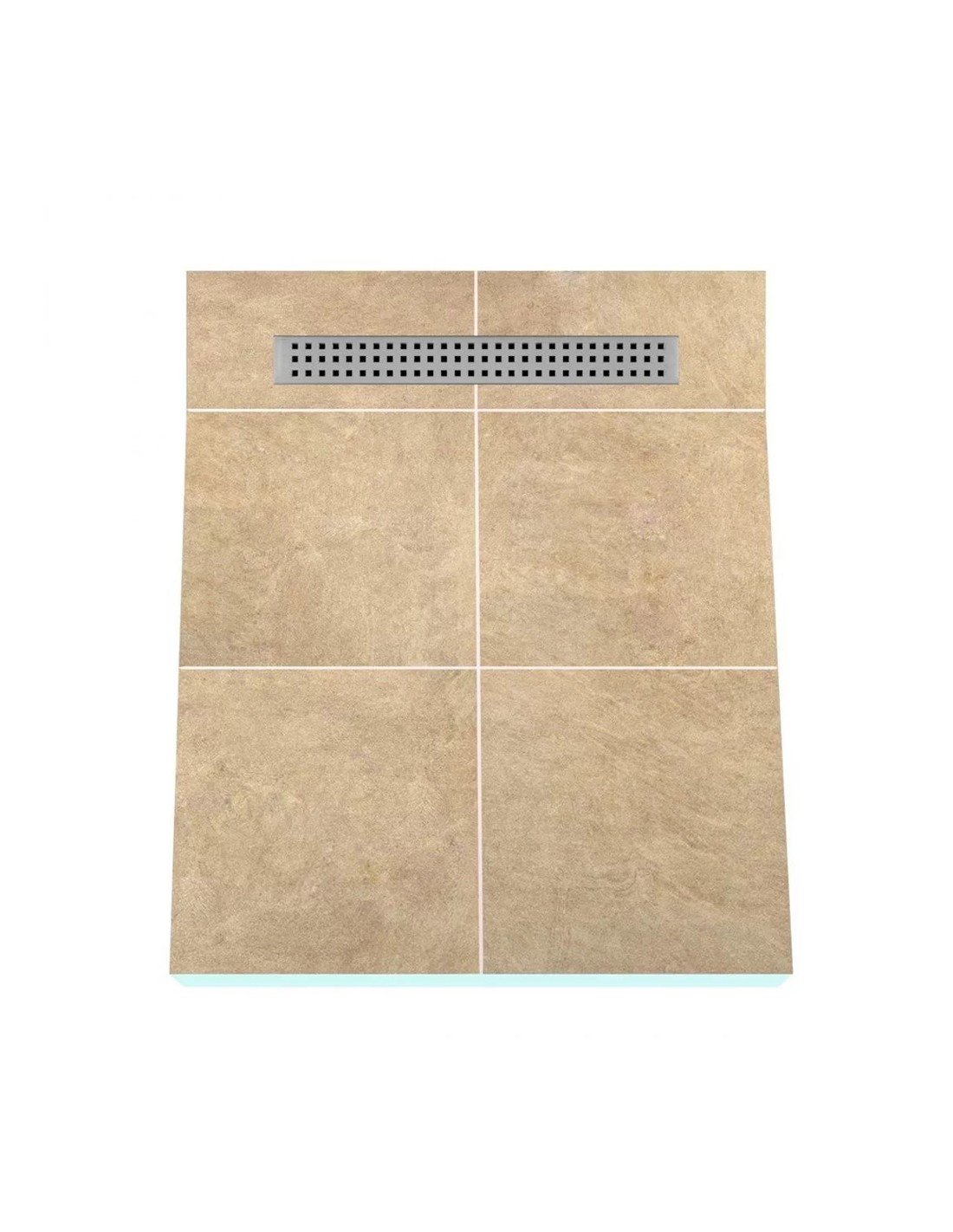 Doucheplaat met enkelzijdig afschot, perfect voor grootformaat tegels, wordt geleverd met een geïntegreerde roestvrijstalen goot. De plaat is tijdens het productieproces waterdicht gemaakt. Geen diagonale tegelsneden nodig.