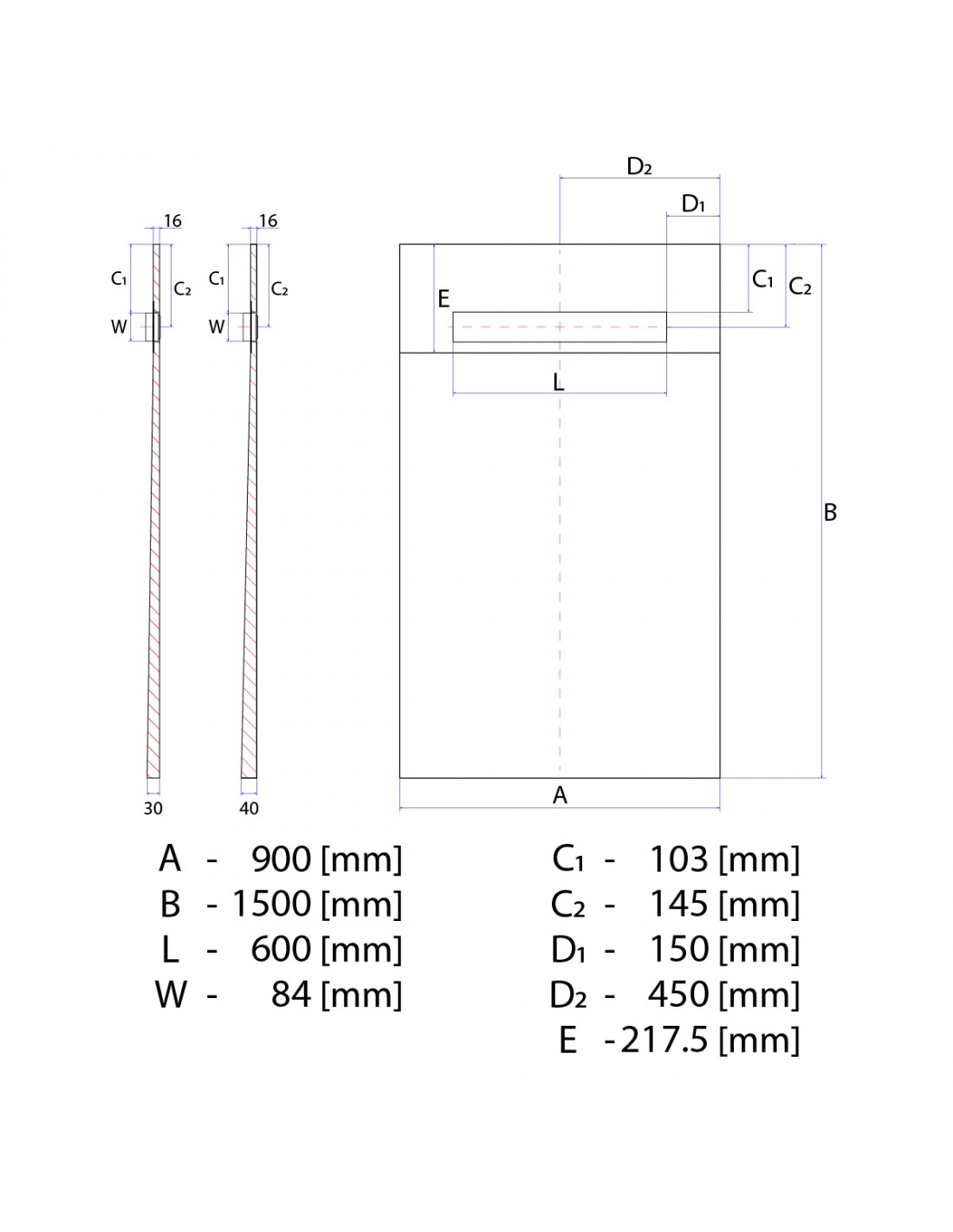 - 900 x 1500 mm