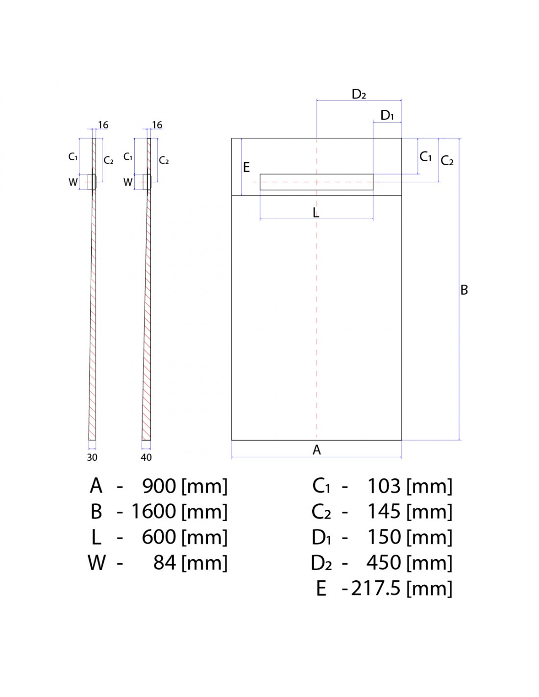 - 900 x 1600 mm