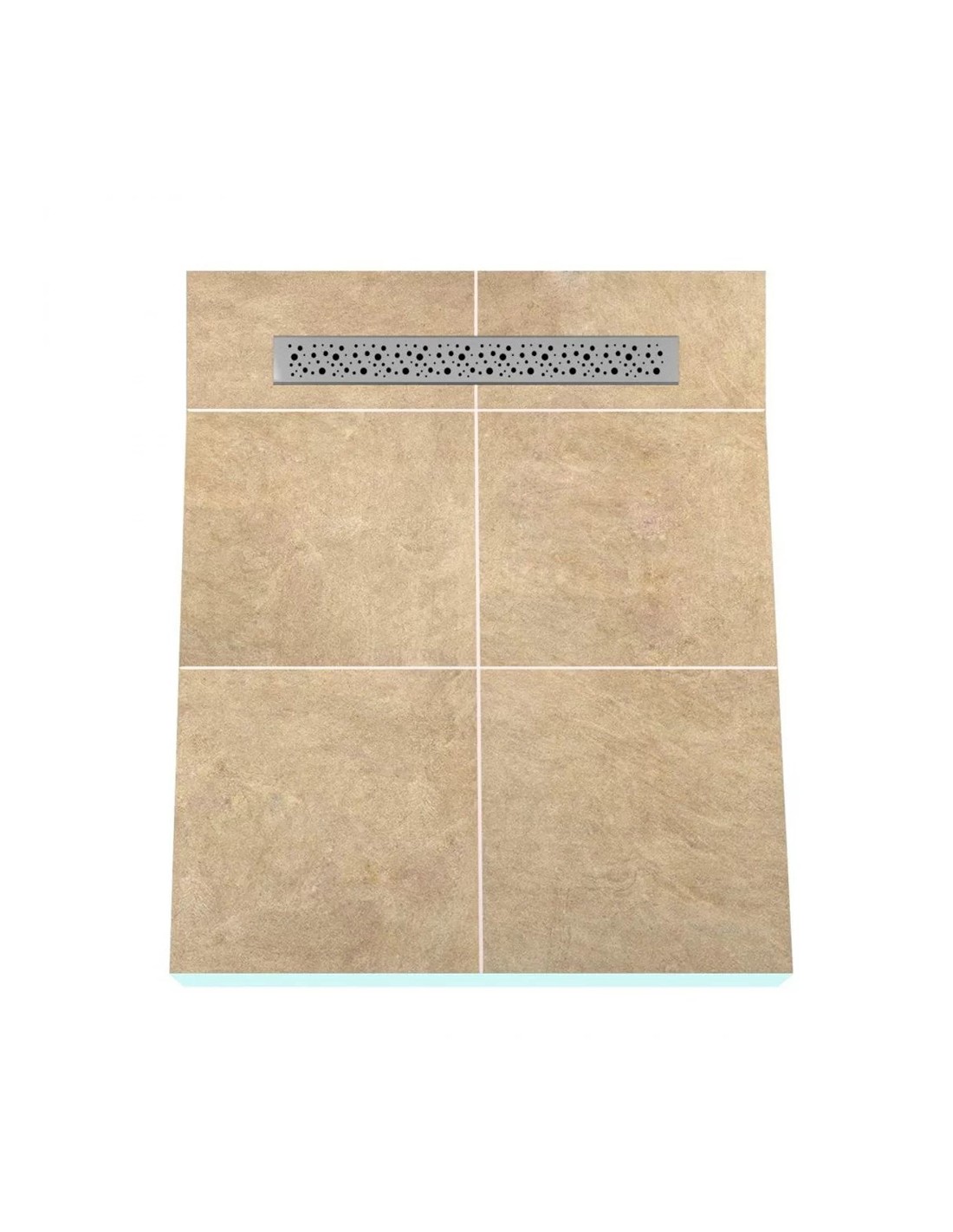 Doucheplaat met enkelzijdig afschot, perfect voor grootformaat tegels, wordt geleverd met een geïntegreerde roestvrijstalen goot. De plaat is tijdens het productieproces waterdicht gemaakt. Geen diagonale tegelsneden nodig.
