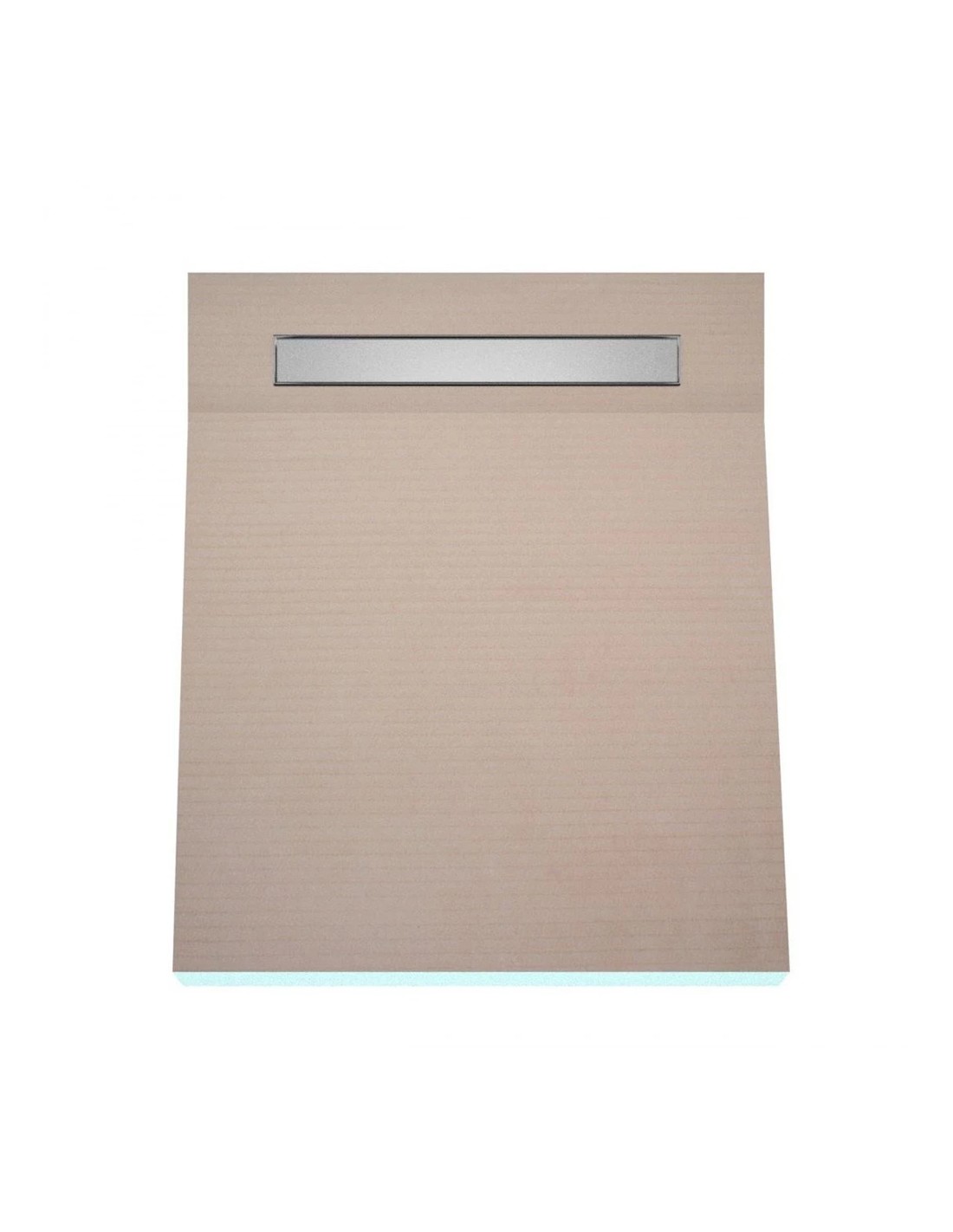 Doucheplaat met enkelzijdig afschot, perfect voor grootformaat tegels, wordt geleverd met een geïntegreerde roestvrijstalen goot. De plaat is tijdens het productieproces waterdicht gemaakt. Geen diagonale tegelsneden nodig.