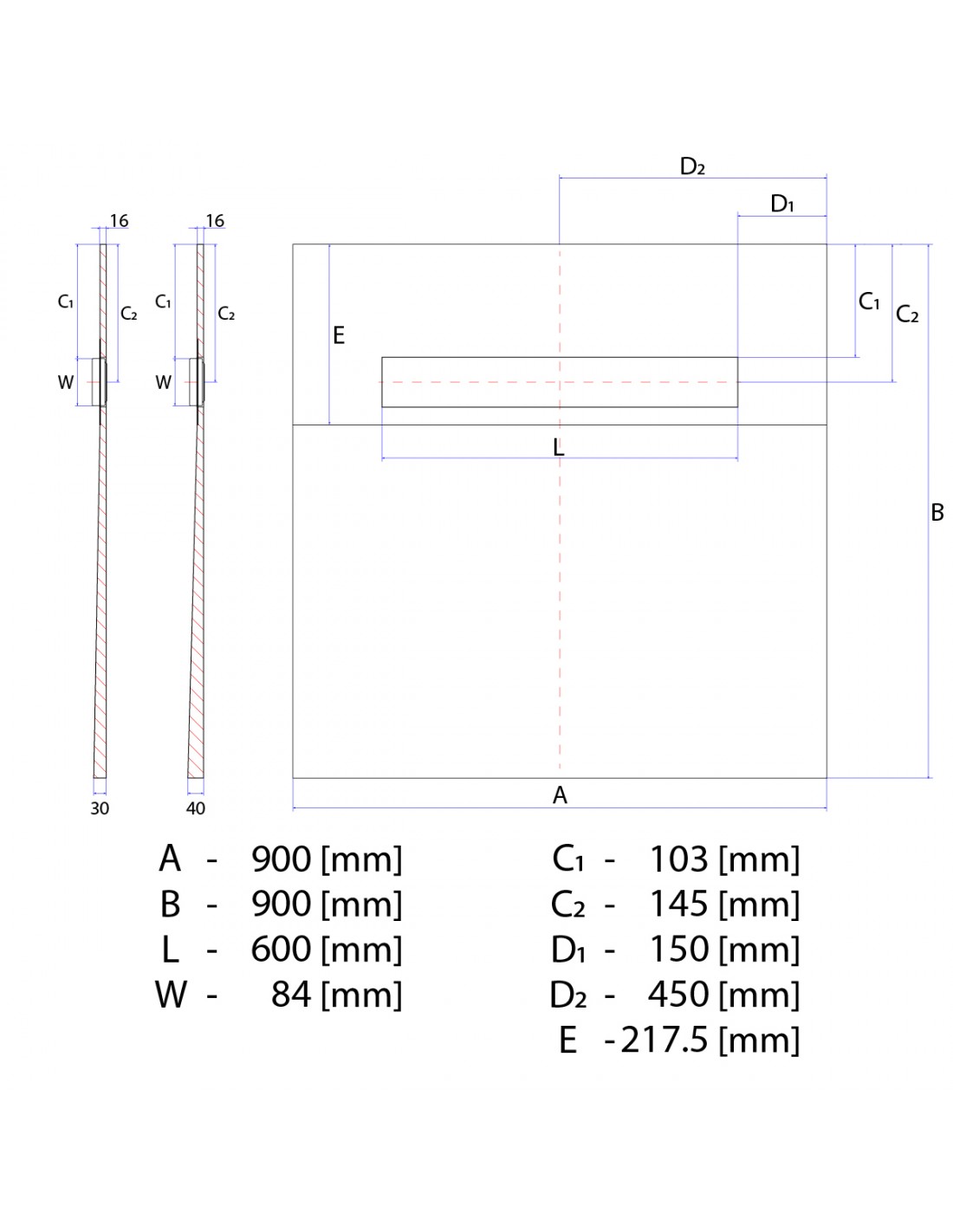 - 900 x 900 mm