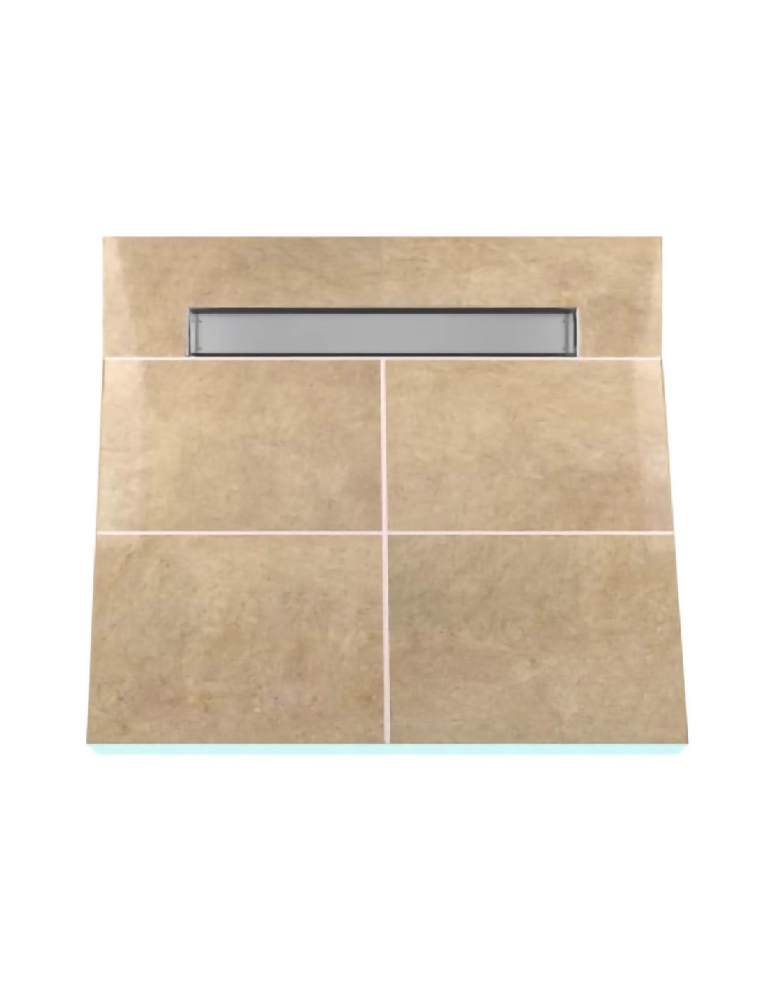 Doucheplaat met enkelzijdig afschot, perfect voor grootformaat tegels, wordt geleverd met een geïntegreerde roestvrijstalen goot. De plaat is tijdens het productieproces waterdicht gemaakt. Geen diagonale tegelsneden nodig.