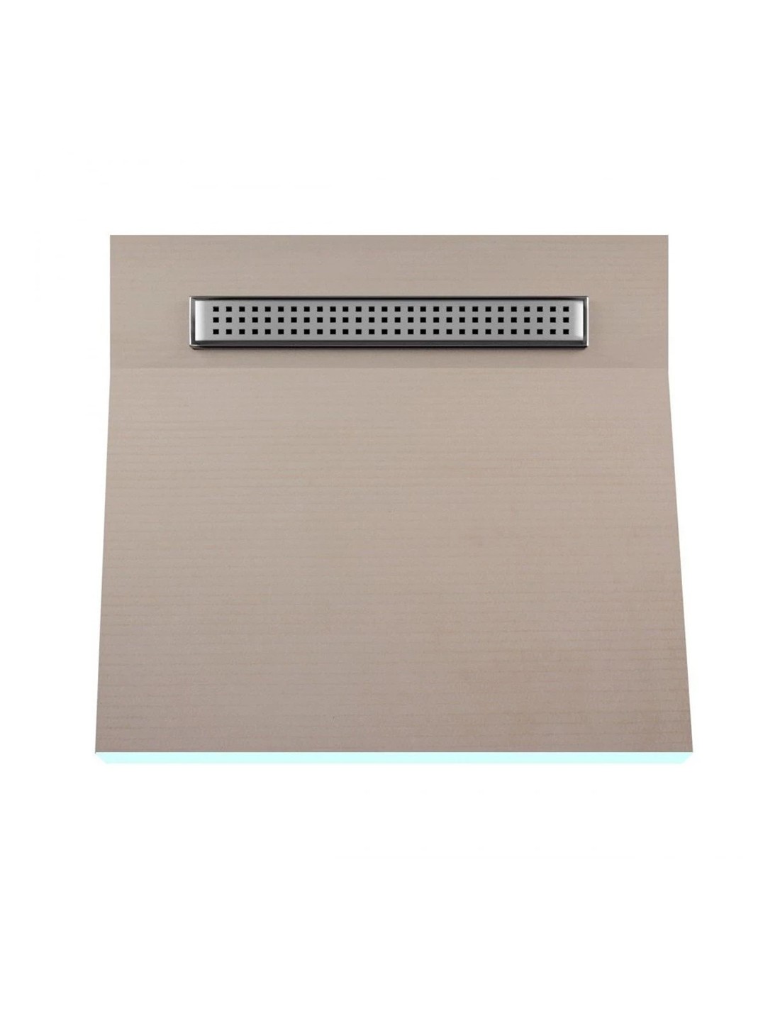 Doucheplaat met enkelzijdig afschot, perfect voor grootformaat tegels, wordt geleverd met een geïntegreerde roestvrijstalen goot. De plaat is tijdens het productieproces waterdicht gemaakt. Geen diagonale tegelsneden nodig.