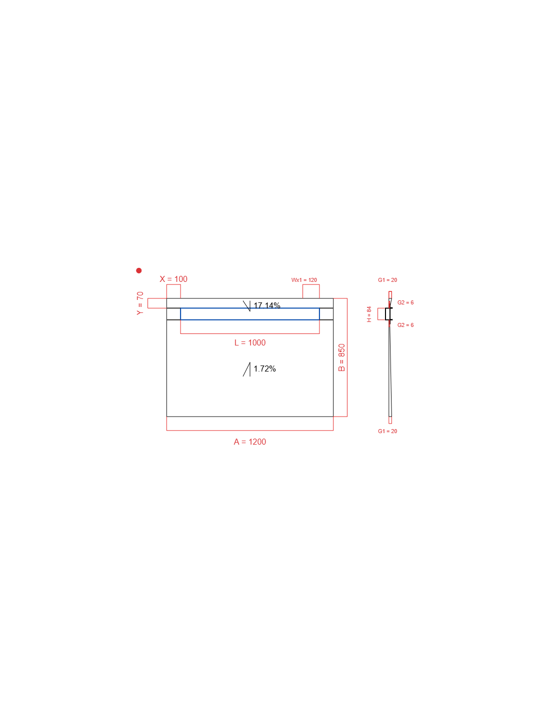 Showerbase Wiper 2 way 1200 x 850 mm Line Premium Ponente 1000 mm Brushed, Dikte : 20 tot 6 mm Uitlaat : 880 mm, Afvalput : H+M Drop 35/50