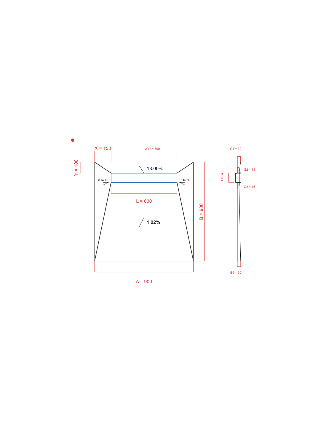 - Douchebak 900 x 1500