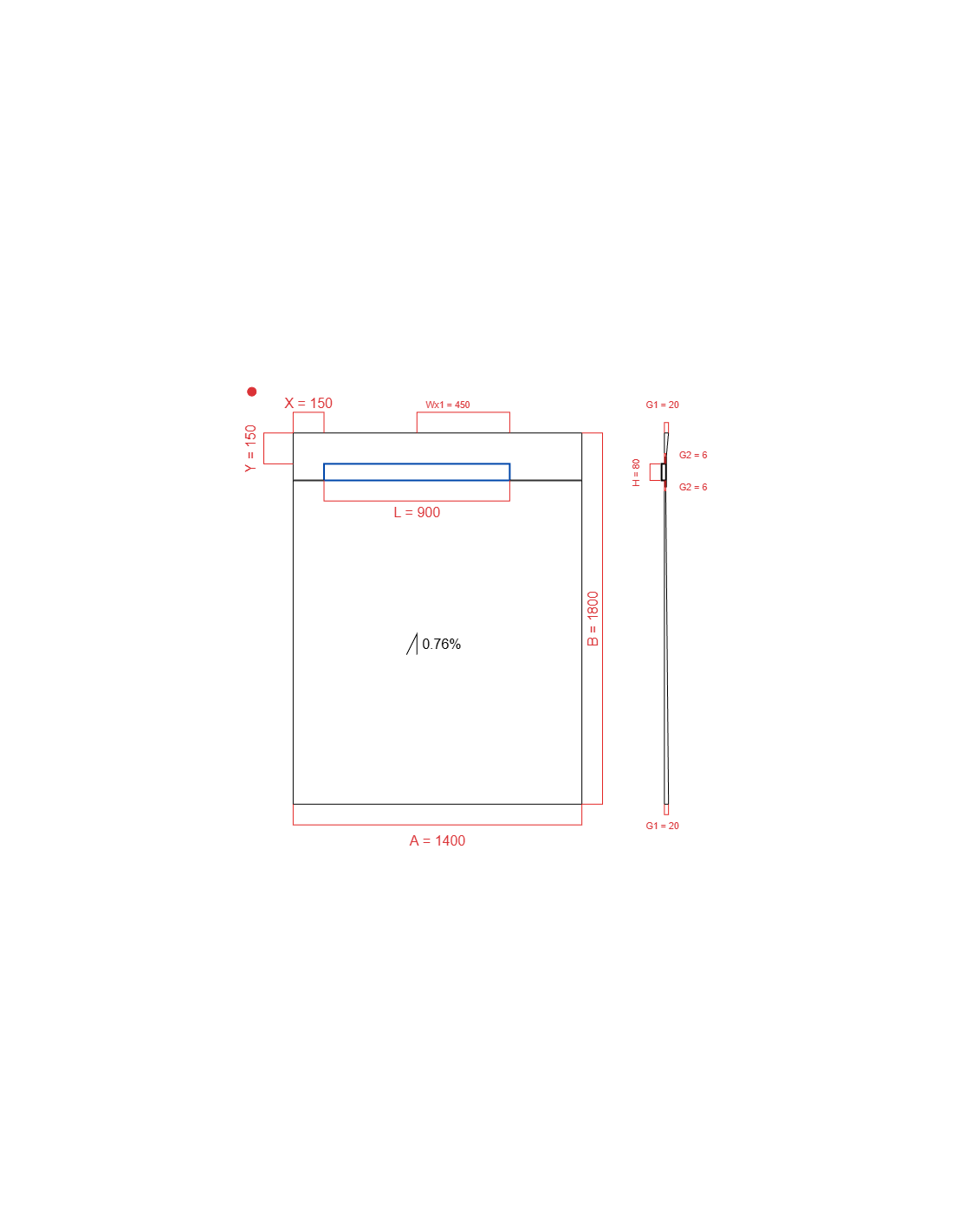 Showerlay Wiper 1 way 1400 x 1800 mm Line Invisible Invisible 900 mm Brushed, Dikte : 20 tot 6 mm Uitlaat : 450 mm, Afvalput : H+M Drop 35/50