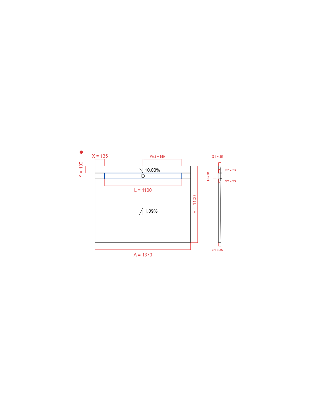 | Douchegoot maat | 1100 mm |