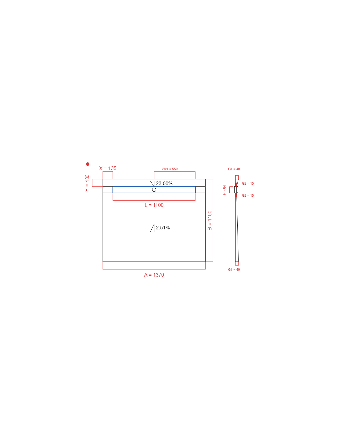 | Douchegoot maat | 1100 mm |