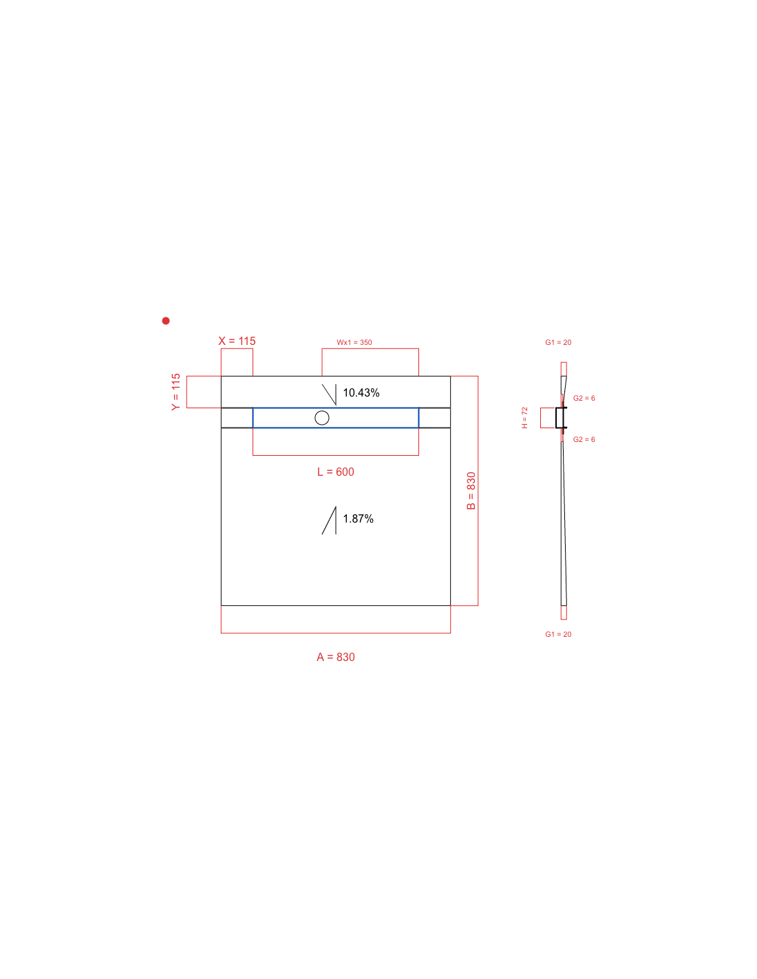- Douchebak 900 x 1500