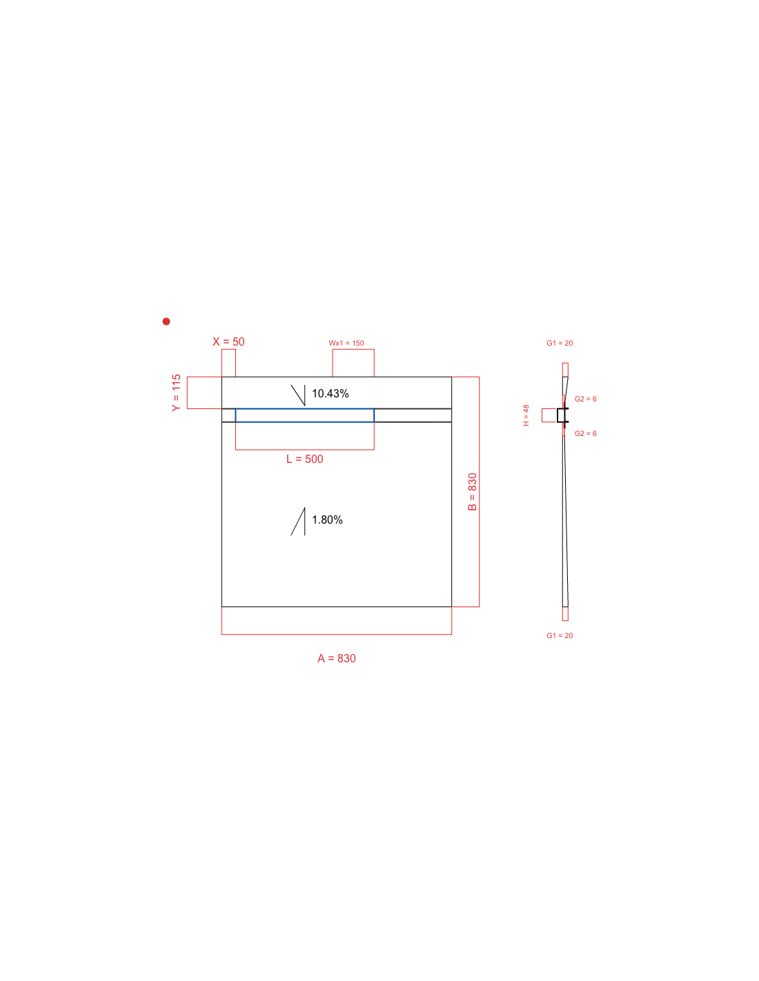 - Douchebak 800 x 1500