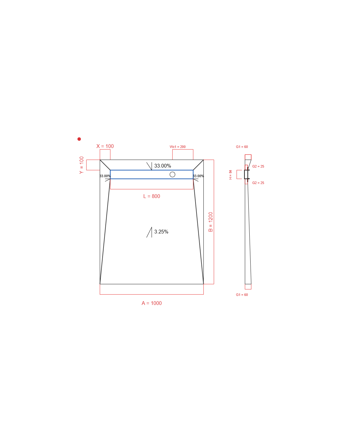 | Dikte afvoergedeelte | 25 mm |