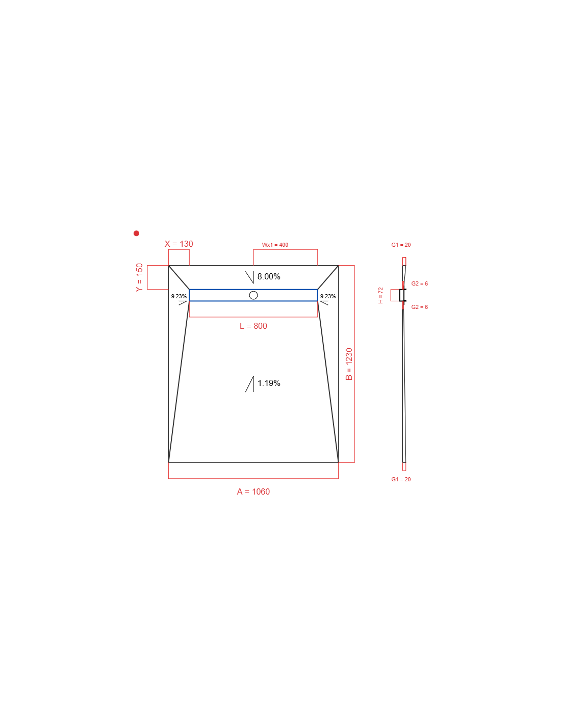 | Douchegoot maat | 800 mm |