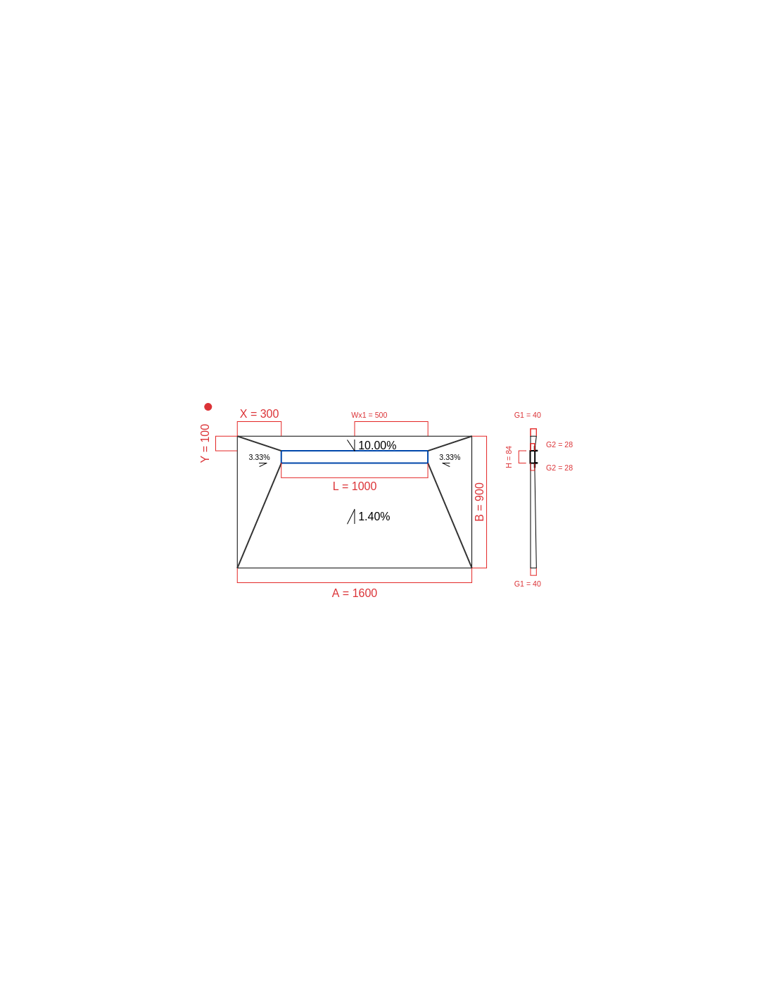 Showerlay Wiper 4 way 1600 x 900 mm Line Premium Pure 1000 mm Brushed, Dikte : 40 tot 28 mm Uitlaat : 500 mm, Afvalput : H+M Drop 35/50