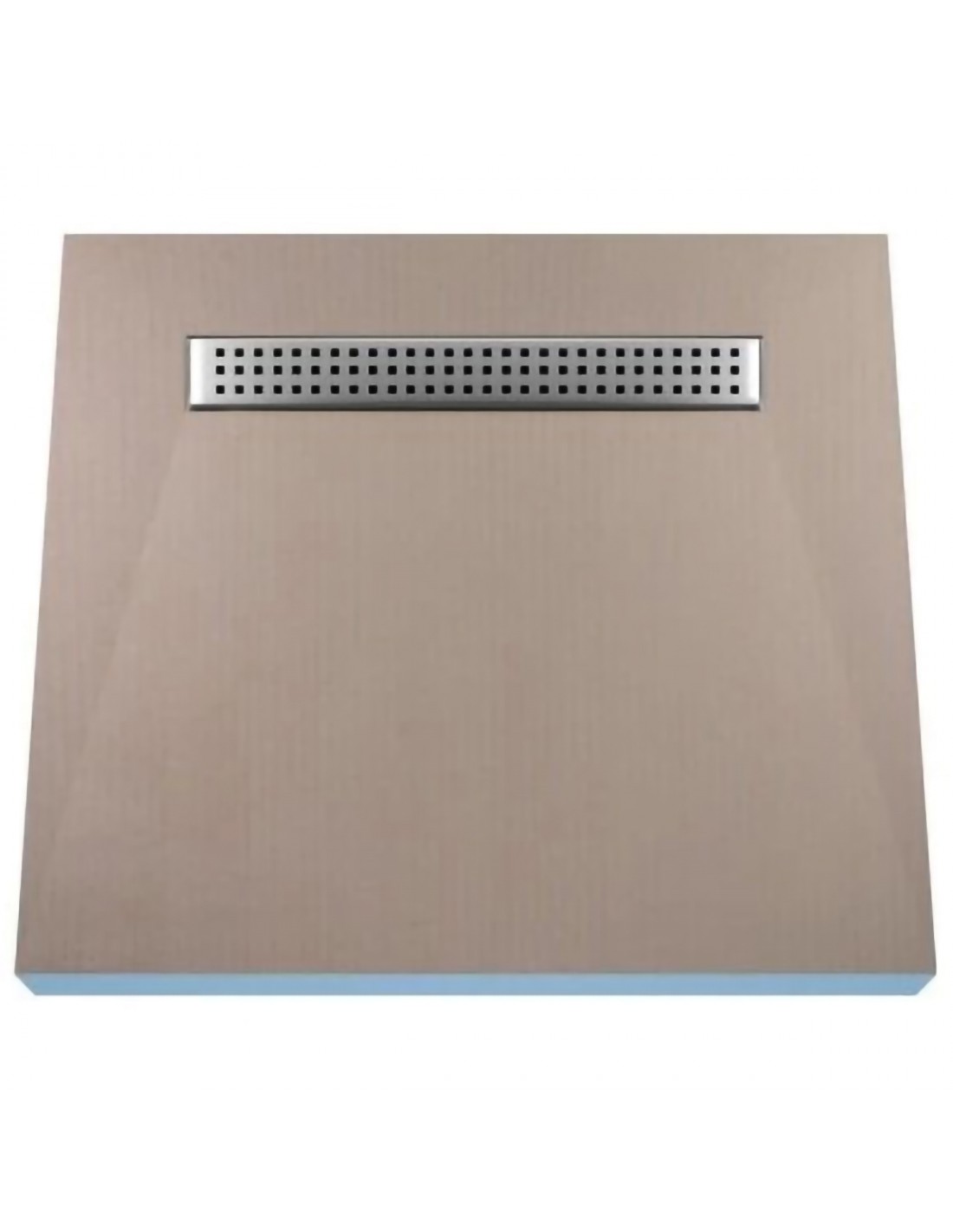 Dit is een inloopdouche. De plaat bestaat uit hard XPS-schuim dat aan beide zijden is gecoat met een elastische kleeflaag die is versterkt met een glasvezelgaas. Het kan worden afgewerkt met keramische tegels van elk formaat of mozaïek. Speciale groeven in de richting van de afvoer maken het gemakkelijker om het juiste afschot te krijgen bij het betegelen. Afhankelijk van het type vloer en de maat van het afschot waar u uit wilt kiezen, zijn er drie plaatdiktes: 20, 28 en 35 mm.