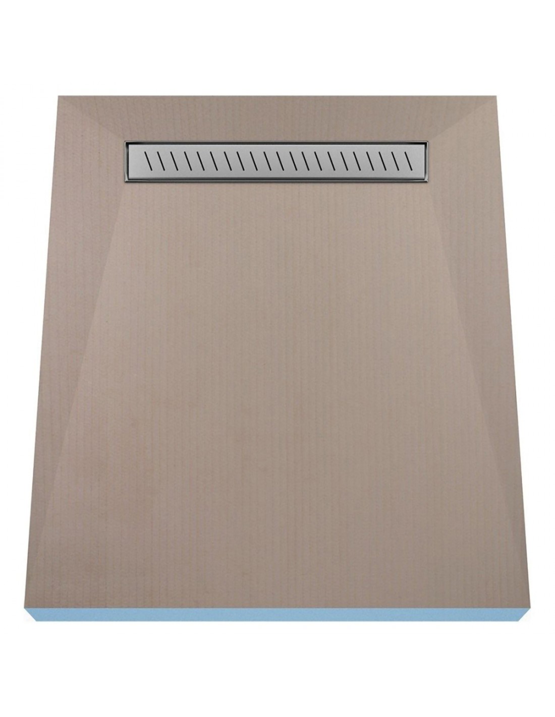 Dit is een inloopdouche. De plaat bestaat uit hard XPS-schuim dat aan beide zijden is gecoat met een elastische kleeflaag die is versterkt met een glasvezelgaas. Het kan worden afgewerkt met keramische tegels van elk formaat of mozaïek. Speciale groeven in de richting van de afvoer maken het gemakkelijker om het juiste afschot te krijgen bij het betegelen. Afhankelijk van het type vloer en de maat van het afschot waar u uit wilt kiezen, zijn er drie plaatdiktes: 20, 28 en 35 mm.