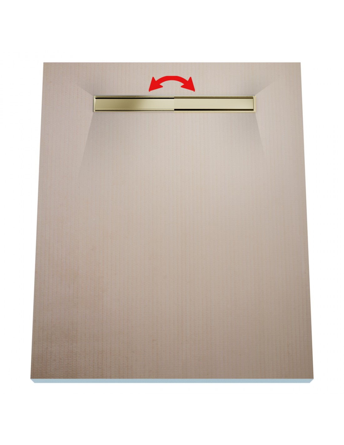 De Showerlay Wiper 800 x 1500 Elite Reversible Messing is een inloopdoucheplaat met een geïntegreerde lineaire afvoer. De plaat is ontworpen voor tegels van verschillende diktes en geeft uw badkamer een stijlvolle en elegante uitstraling. Deze doucheplaat is verkrijgbaar in diverse afmetingen en drie verschillende diktes en kan indien nodig op maat worden gemaakt. Deze plaat heeft geweldige akoestische en isolerende eigenschappen, is licht van gewicht en zeer sterk. Het geschatte afschot van de plaat is 1%-2% (afhankelijk van de dikte van de plaat). Het geavanceerde afvoerrooster in deze plaat is beschikbaar in vier diverse kleuren en heeft zeven verschillende rooster patronen. Bij deze plaat zijn ook drie sifons verkrijgbaar, elk met verschillende afmetingen en afvoercapaciteiten.
